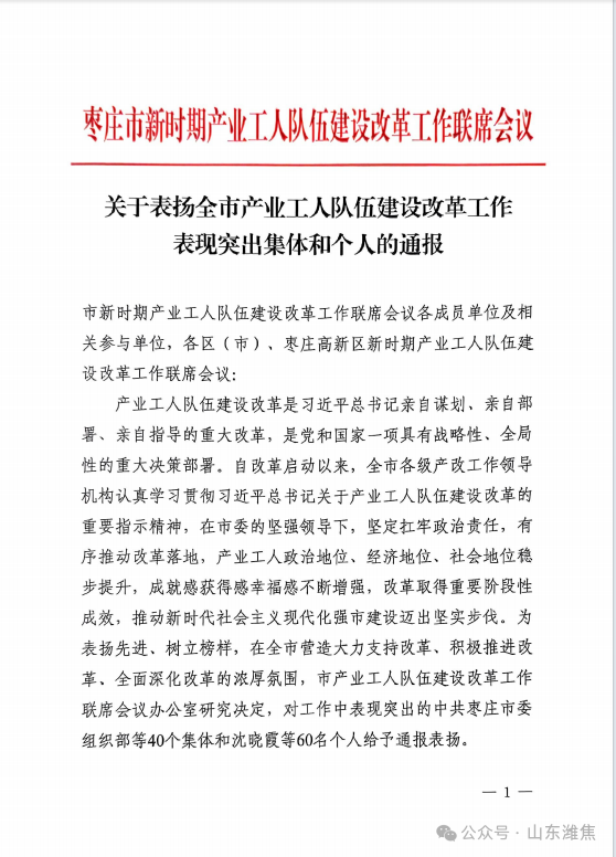 近年來,公司深入落實產(chǎn)業(yè)工改部署,聚焦“知識型、技能型、創(chuàng)新型”隊伍建設,通過搭建技能提升平臺、完善激勵機制等務實舉措,推動產(chǎn)業(yè)工人隊伍素質穩(wěn)步提升,改革成效獲得市級認可。下一步,公司將珍惜榮譽、再接再厲,持續(xù)深化產(chǎn)業(yè)工人隊伍建設改革,為企業(yè)高質量發(fā)展注入更強動力。