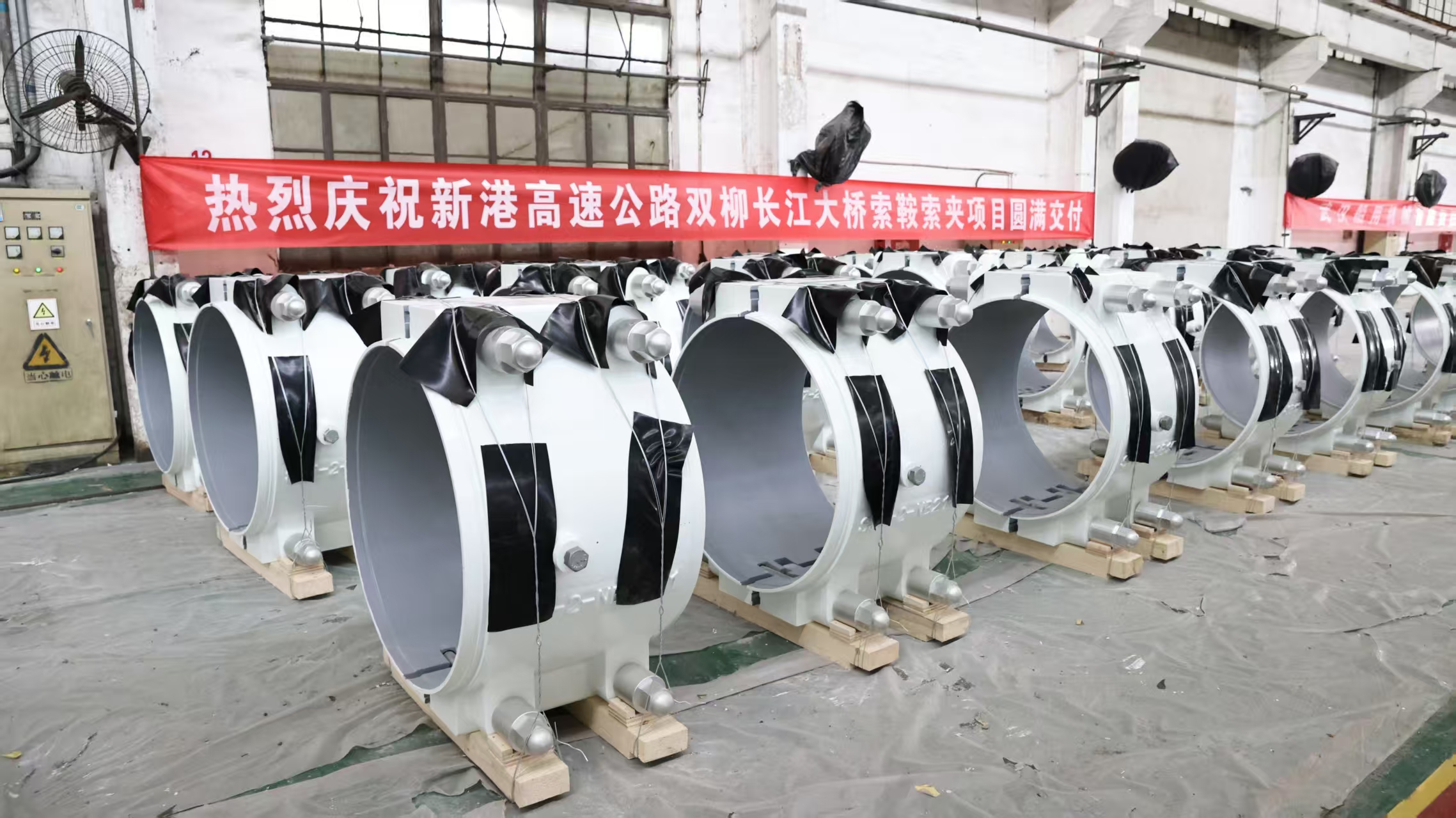 日前,中船集團(tuán)武漢船機(jī)承制的新港高速公路雙柳長江大橋最后一批索夾全部發(fā)運(yùn)。
