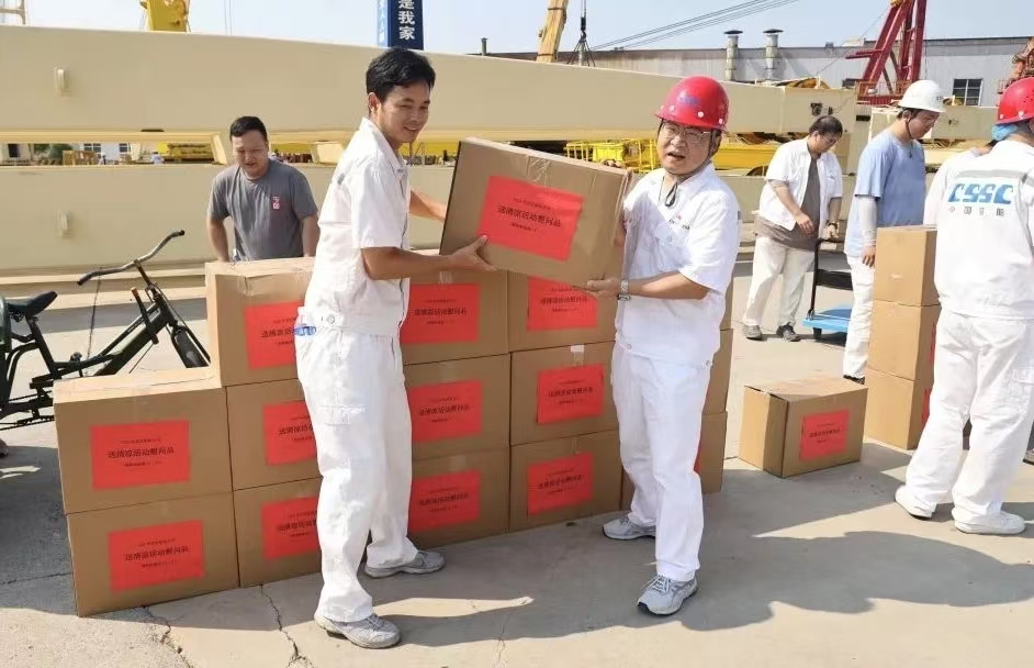 上午9點,公司領導陳世龍、孫凱與相關部門負責人,在公司錨絞機負載試驗臺架、廠北露天試驗現場、工業(yè)園油漆房看望和慰問堅守在崗位上的一線員工,將462份清涼物資送到員工手中,并叮囑各部門負責人和現場作業(yè)人員從細節(jié)入手,把安全健康放在第一位,合理安排好工作和休息時間,切實將防暑降溫工作落實到實處,讓員工在安全、健康的環(huán)境下工作。